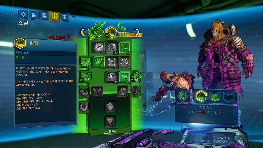 보더랜드3 공략 정보, FL4K 플랙 비스트마스터 잠행 은신캐 스타일 특성 스킬 트리 가이드